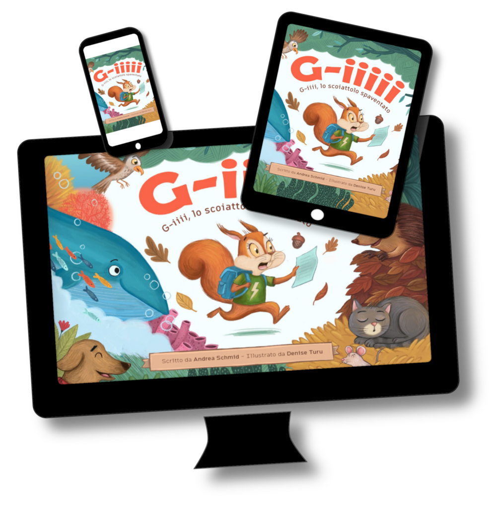 Libro per bambini “G-iiiii, lo scoiattolo spaventato”scritto da Andrea Schmid,illustrato da Denise Turu(flip-book online)